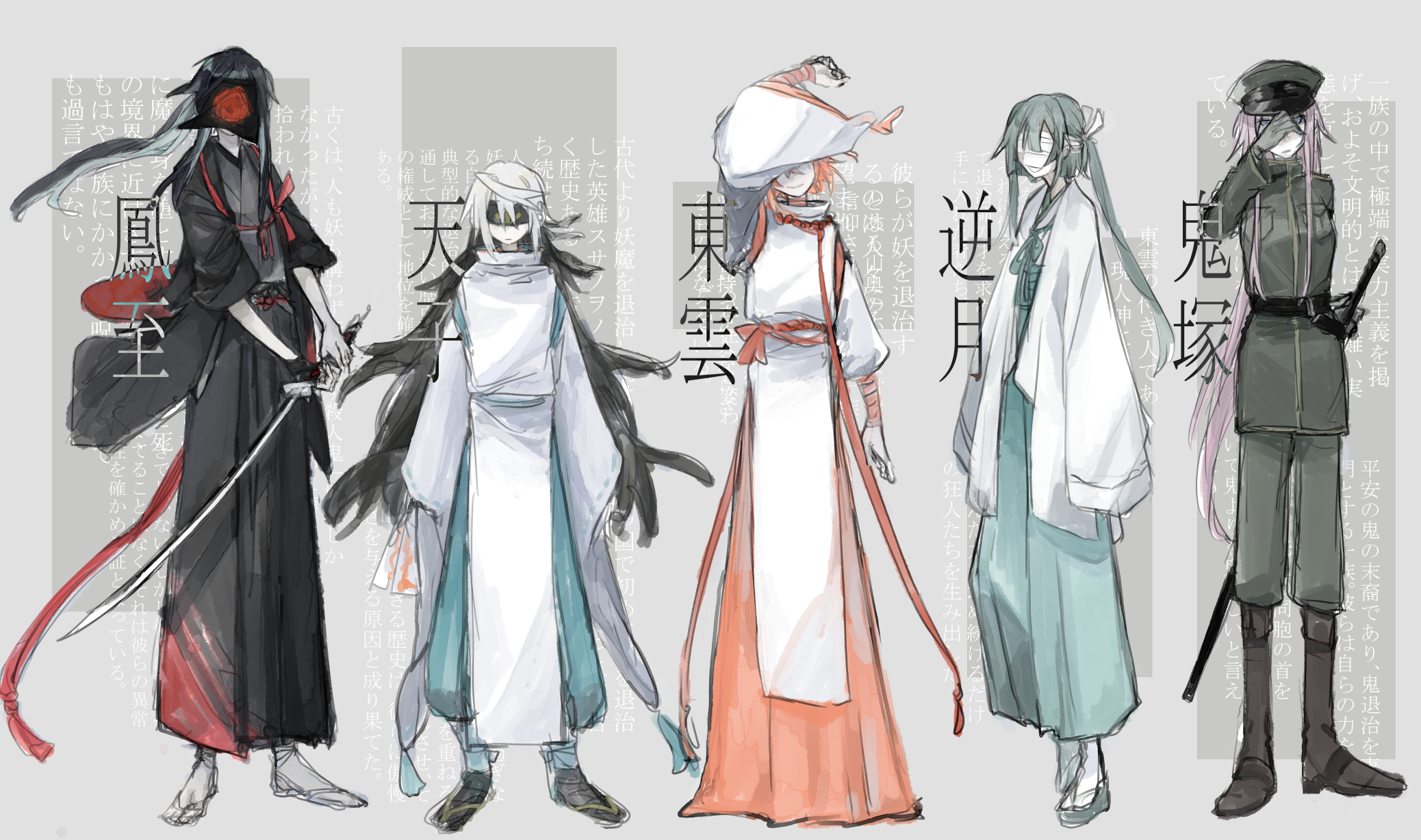 退治師とは、妖怪退治を生業とする者たちを指す。古くから妖怪と密接な日本では退治師を家業とする一族が一定数存在し、中でも力のある、最も歴史ある退治師として朝廷に仕えてきた天子家、江戸時代に幕府の「妖怪殺し」として名を馳せた鳳至家、とある山奥の村で 土地神として妖から人々を守る現人神の東雲家、東雲神社の巫女一族として東雲と共に妖怪退治を行う逆月家、鬼の末裔でありながら鬼退治を専門とする鬼塚家、の五家を五大退治師一族と呼ぶ。