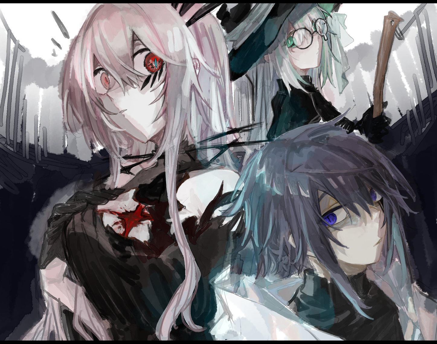 東雲アカネは逆月イザヨイを師とする退治師見習いであり、東雲家に代々受け継がれてきた使い魔の黒狸と白狐を従えている。
